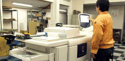 製版、刷版といったオフセット印刷に必要な工程が省け、データを直接出力するデジタル印刷機を使用します。そのため、1部からも必要に応じて気軽に印刷でき、従来工程が省けるので納期は大幅に短縮できます。